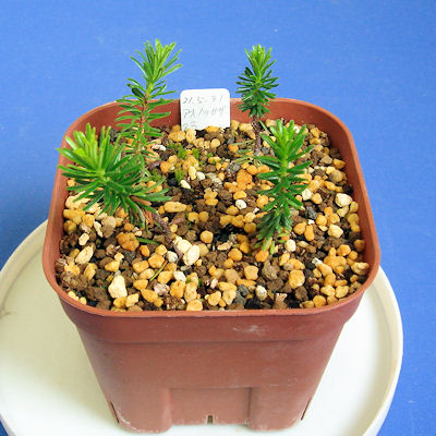 [メモ] 発芽苗が小さすぎこの例では2年目に植え替えをした。 なおその後も実験を繰り返し、現在は1年目で植え替えている。鉢は6.0cmプラポット。 |